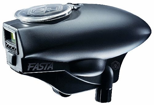 Description Spyder is proud to introduce the new Fasta Electronic Loader. The Fasta provides both a sleek aerodynamic design and lightning fast game play with an impressice 30+ BPS. This loader picks up slack on the others promising to be the fastest. The Fasta is ultra light weighing in at one pound with the batteries installed! The loader has an impressive 230-ball capacity and is easy to reload with the quick load lid. The revolutionary feed ramp reduces popcorning in the feed neck which enables the quickest load imagined. The Fasta comes with low battery indicators. With the LCD screen the players can stay on top of the game with an advanced timer. Enjoy your speed.Features High Feed Rate 30+BPS 230 Ball Capacity 18V for extended battery life Audio Alerts Low Battery Indicator Auto Shut Off Poly Carbon Shell Quick reload shell Loader weight:1 pound w/ batteries